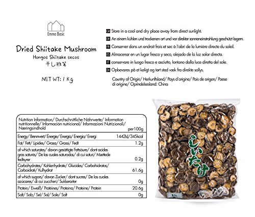 Specification: Emma Basic Shiitake-Pilze getrocknet 1kg | Umani | Vegan| Protein| Faser