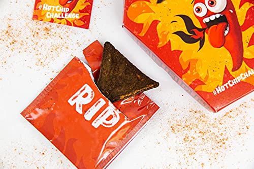 ✔ INHALT: Tortilla-Chip einzeln extra verpackt für eine lange Haltbarkeit (2 Jahre) und zum Schutz der Schärfe, Schutzhandschuh und ein #HOTCHIPCHALLENGE Aufkleber.