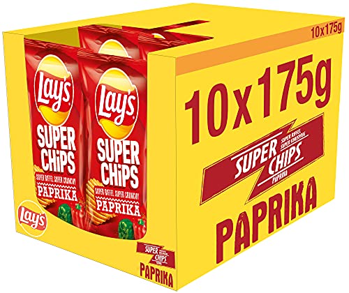 Lieferumfang: 10 x 175 g Tüte Lay’s Superchips Paprika – der knusprige Snack zu jedem Anlass