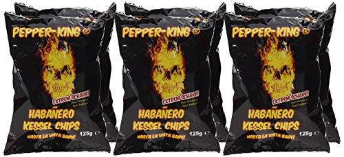 Extrem scharf und lecker! Das sind die Pepper-King Kessel Chips in den 2 Sorten Habañero Chili und Jalapeño BBQ für alle, die gern extrem scharf essen und snacken. Die Kessel Chips im scharfen Verpackungsdesign werden aus dick geschnittenen Kartoffeln und mit bestem Sonnenblumenöl hergestellt.