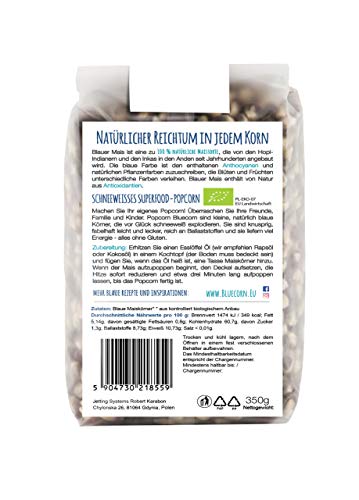 Specification: BLUECORN Bio-Popcorn aus blauem Maiskorn zum Selbermachen 7 x 350g | Natürliche (GMO freie) Maissorte | Poppt Schneeweiß | Glutenfrei, Vegan, Öko | Leicht, Knusprig and Lecker