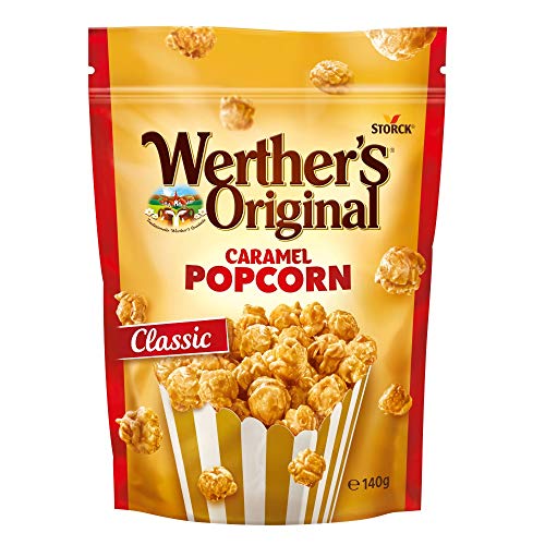Lieferumfang: 12 x 140g Packung Werther’s Original Popcorn Caramel / Das leckere Popcorn für zwischendurch – Naschen erwünscht!