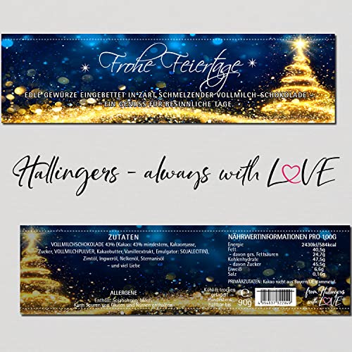 Specification: Hallingers Vollmilch-Schokolade mit Lebkuchengewürzen hand-geschöpft (900g) – 10x Frohe Feiertage (Tafel-Karton) – Weihnachten 2021, Für Sie#Für Ihn#Sparpack – Geschenk zu Weihnachten 2021