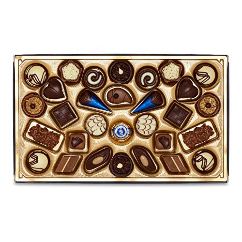 Die Pralinen Schachtel enthält: 2 Trüffel Marc de Champagne Pralines, 1 Nuss-Nougat Praline, 2 Mandel-Nuss-Splitter Pralines, 2 Feinherbe Spitztüten Pralinen, 2 Amaretto Trüffel Pralines, 2 Nuss-Becherli Pralines, 2 Macchiato-Stern Pralines, 4 Orangen-Marzipan Pralines, 2 Caramel-Amande Pralines, 2 Coeur à l’Orange Praline, 2 Nougat-Rhombe Pralines, 2 Choco Krokant Velours Pralines, 2 Trüffel Noir Pralinen, 1 Perle de Cacao Praline, 2 Marzipan Gianduja Pralines