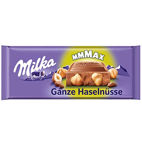 Milkas Ganze Haselnuss ist der zartschmelzende Genuss aus 100 Prozent Alpenmilch mit ganzen Haselnüssen.