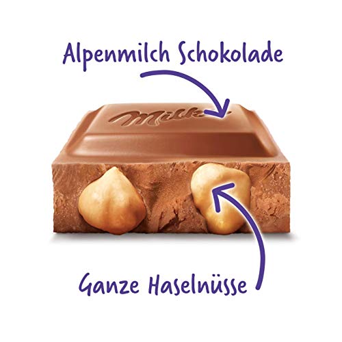 Lieferumfang: 13 x 270g Ganze Haselnuss von Milka / Großtafel aus zartem Schokoladengenuss gefüllt mit ganzen Haselnüssen / Kann Spuren von anderen Nüssen und Weizen enthalten