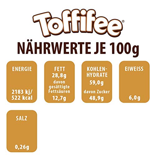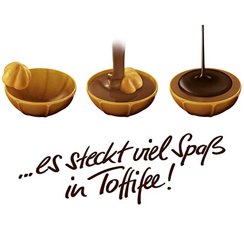 Toffifee 400g Packung Toffifees dürfen bei keinem Familienabend fehlen! Die kleinen und leckeren Pralinen enthalten nur die besten Zutaten: Eine leckere Haselnuss in Nougatcreme ümhüllt von Karamell mit einem Klecks kräftiger Schokolade obendrauf – die einzigartige Kombination, die sowohl bei Groß als auch Klein beliebt ist! Sie eignen sich perfekt zum Teilen, Naschen und Verschenken, weswegen sie auch auf Geburtstagsfeiern immer gut ankommen – mit der Extraportion Spaß, die allen schmeckt. Toffifee 1973 noch eine völlige Weltneuheit, heute der Klassiker unter den Pralinen schlechthin. Sollte Toffifee früher als Energielieferant für die berufstätige Frau dienen, so ist es heute die Haselnusspraline, die Familien auf der ganzen Welt vereint. Kein Wunder, denn mit der einzigartigen Kombination aus liebevoll ausgewählten Zutaten ist Toffifee seit 4 Jahrzehnten eine unverkennbare Praline, die aus dem Alltag nicht mehr wegzudenken ist.